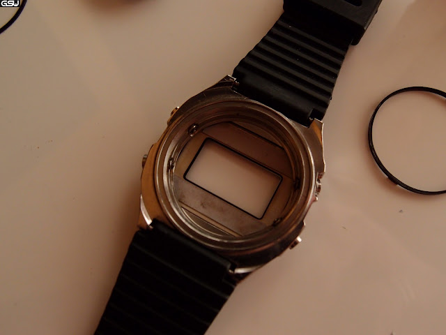 Una pena que Casio no tenga recambios del bisel frontal negro...esta roto en la esquina superior izquierda, si os fijaos en la foto lo vereis...